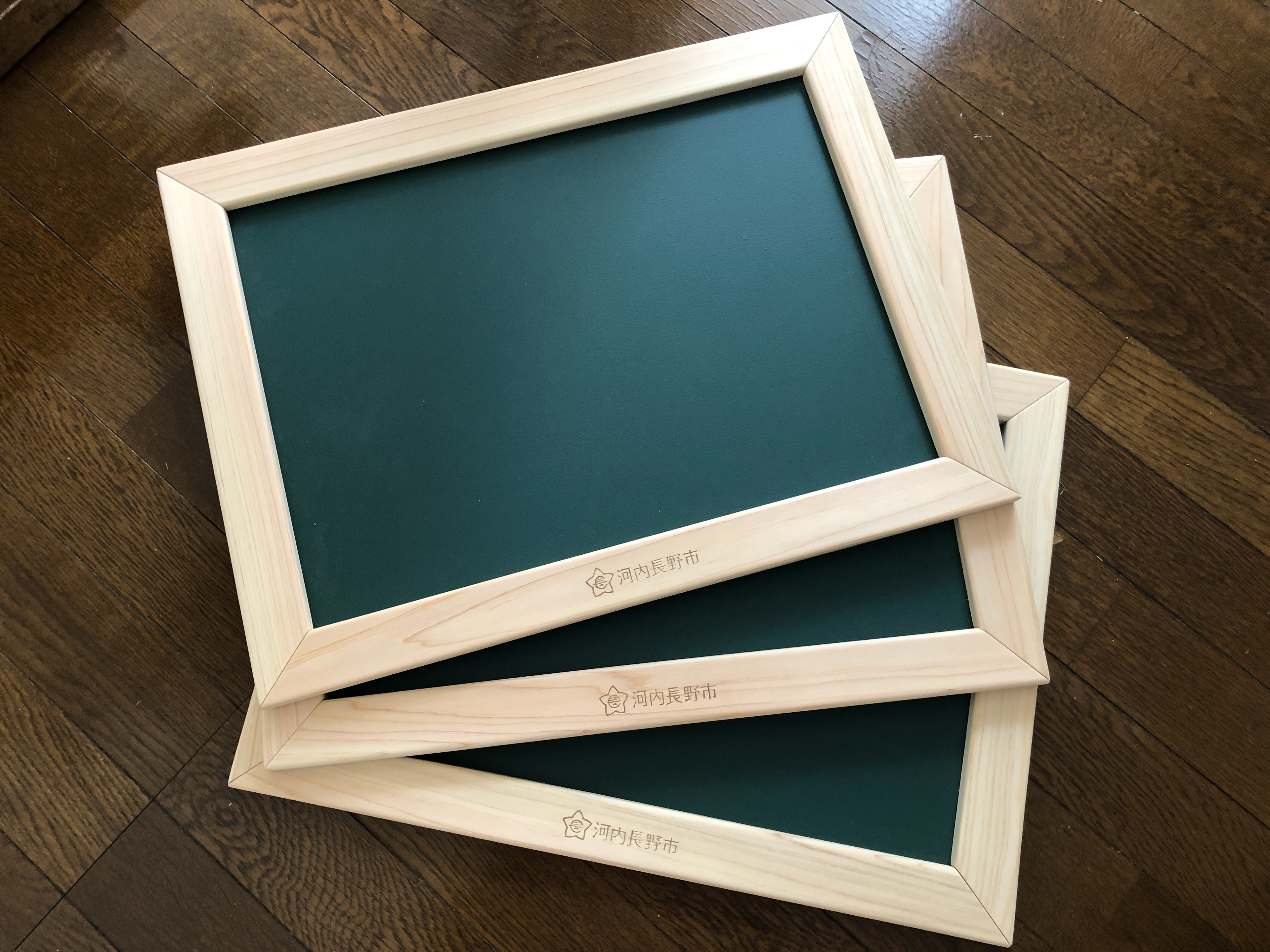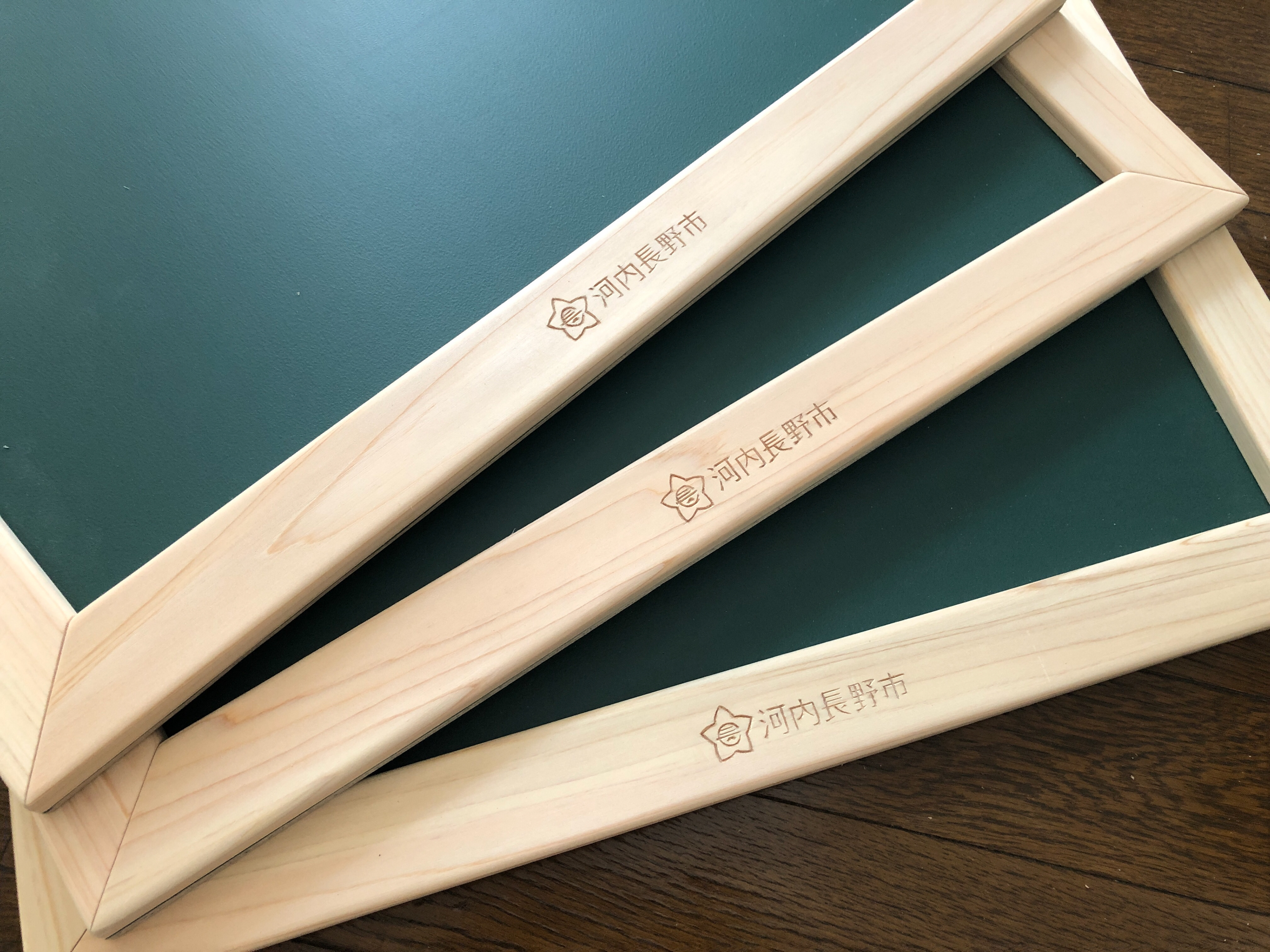 大阪府は河内長野市の人権啓発映像で使用されているフリップ黒板を作りました。木枠は河内長野市で栽培された「おおさか河内材」を使用しています。